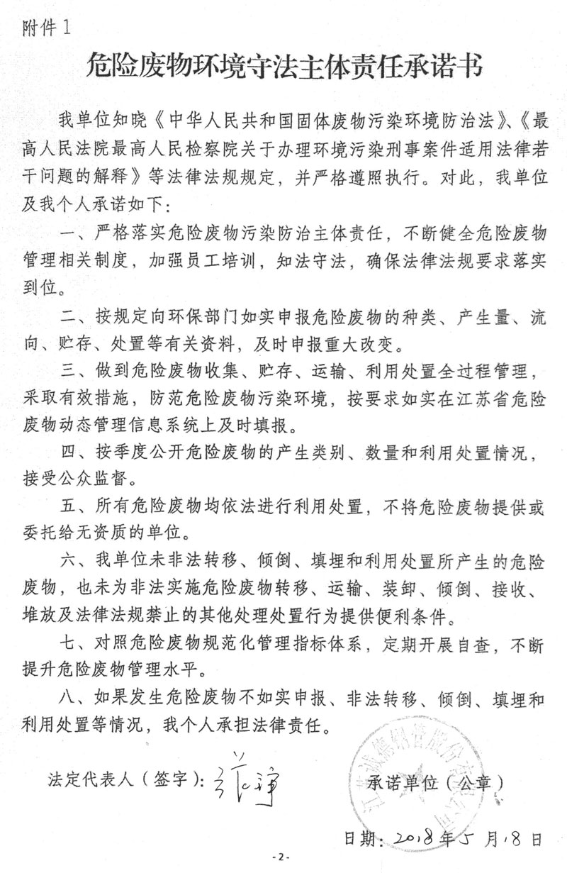 危險廢物環(huán)境守法主體責任承諾書